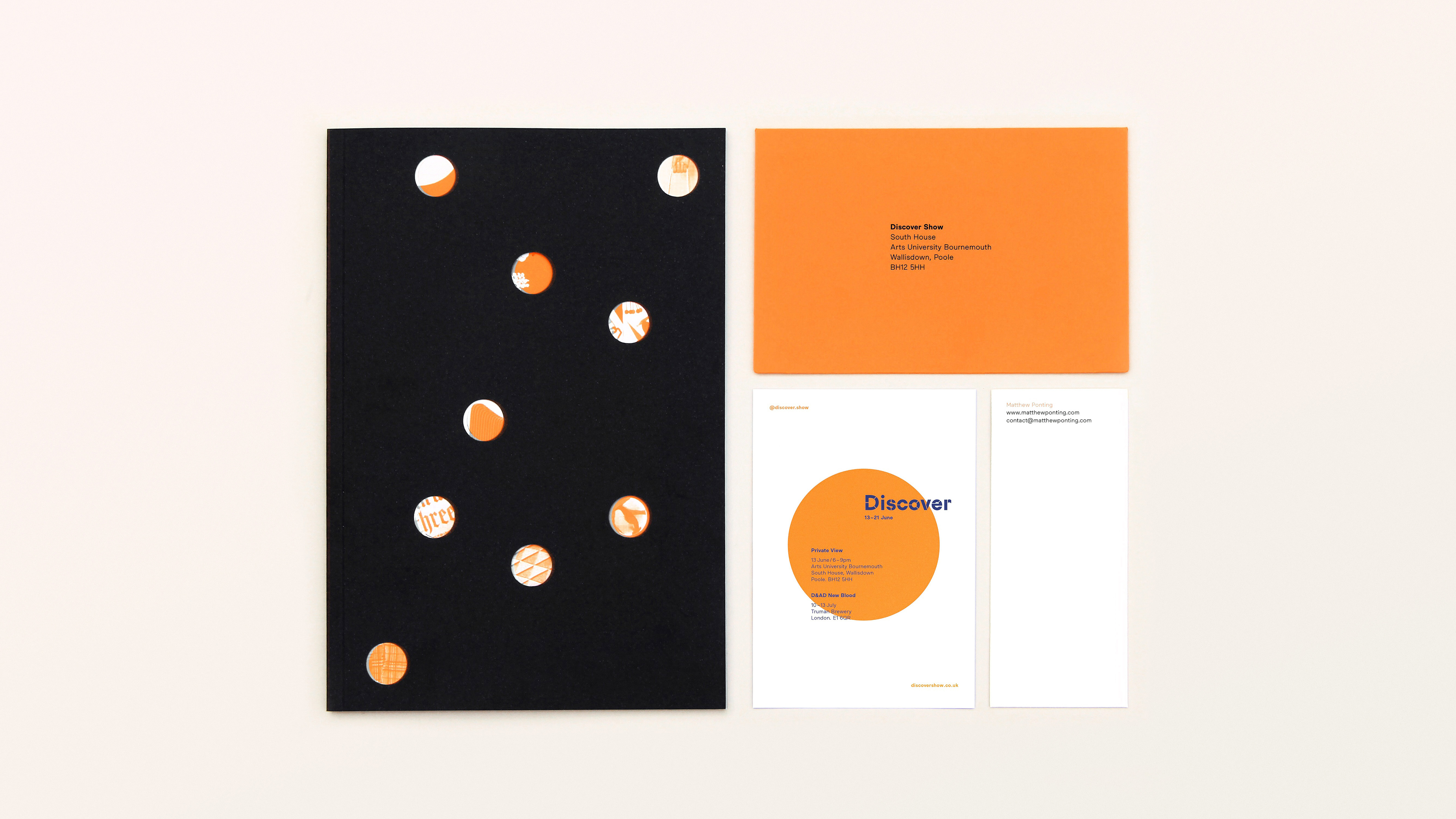 Excited to have been part of the core branding team for our final graduation show, "Discover". The visual identity was created in a modular format to be able to expand and showcase a variety of each students' work in a structured manner. Initial brand guidelines formed the path to exhibition invites, website design, social media visuals, spatial way-finding elements, exhibition space design and show catalogue. The exhibition took place in Bournemouth as well as at D&AD Festival in London